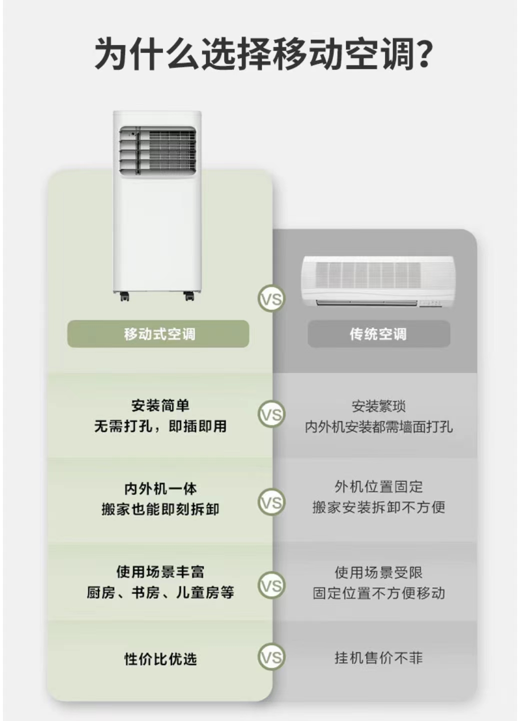 1、無需進(jìn)行安裝,我們購買了移動式空調(diào)之后,不需要像傳統(tǒng)空調(diào)那樣進(jìn)行安裝,使用的時候就好像平常的電風(fēng)扇一樣,只需要插入電源就可以工作了。