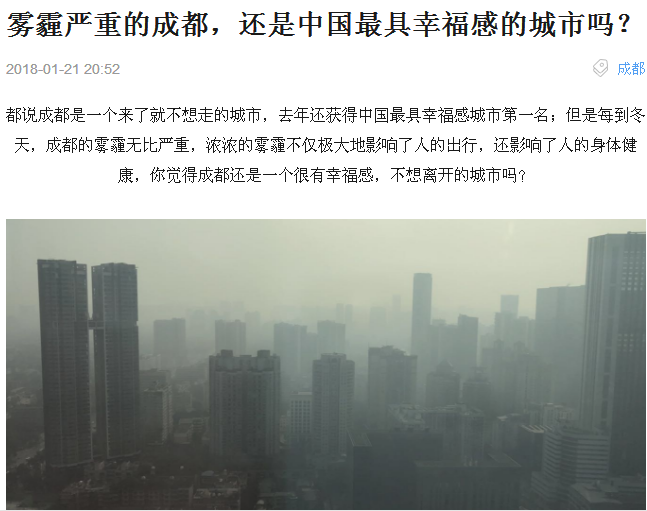 霧霾嚴(yán)重的成都,還是中國(guó)最具幸福感的城市嗎