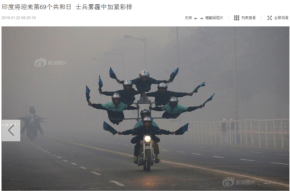 霧霾豈止是中國(guó)有,世界其他地方更是不遑多讓。印度將迎來第69個(gè)共和日,士兵霧霾中加緊彩排,當(dāng)然,三哥一直都是搞笑擔(dān)當(dāng)。