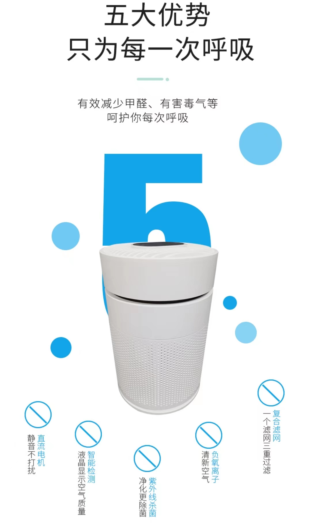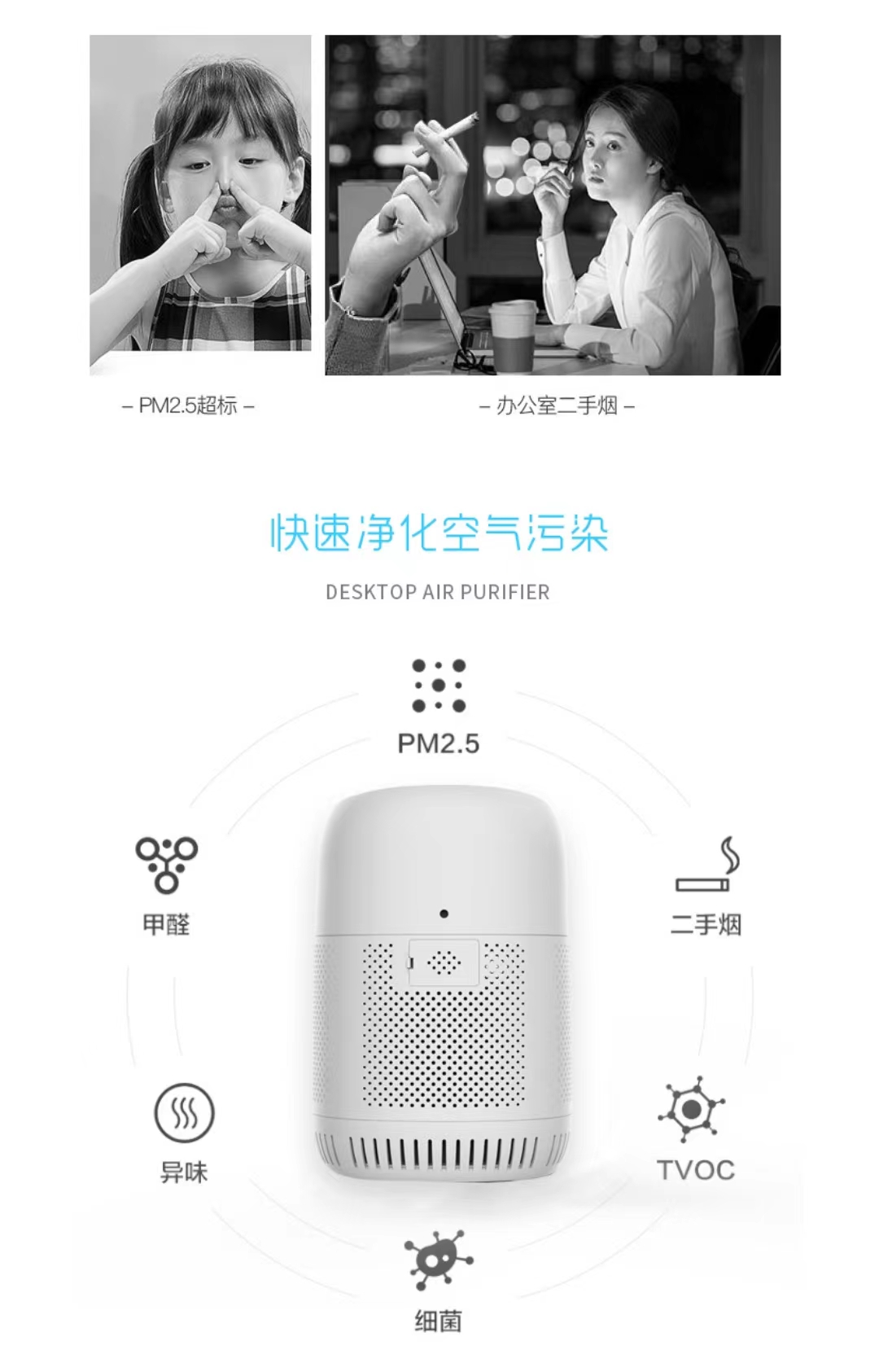 尤其是有寶寶的家庭或者鼻炎患者,更應(yīng)該安排一個(gè)桌面空氣凈化器有的凈化器比較大,特別占地方它集紫外線消毒,殺菌,除甲醛為一體體積小顏值高,還有高清觸控led屏空氣狀態(tài)也可以通過指示燈顯示,麻雀雖小五臟俱全!