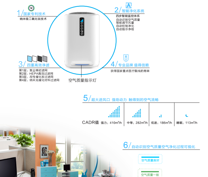 流線型外觀采用一體成型技術(shù),進口電機低功耗、高效率,醫(yī)院專用醫(yī)療級別的高精度空氣凈化器,采用國家專利技術(shù)的納米級二氧化鈦過濾,四層高效智能凈化系統(tǒng),國內(nèi)一線三甲醫(yī)院重點采購產(chǎn)品。